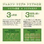 蒸留を3回繰り返すことで、「ジェムソン」が誇るスムースな味わいを生み出す。熟成樽は、バーボン樽とシェリー樽に加え、厳選されたスペイン産とフランス産の栗樽を使用し、栗の木樽が全体に奥深い風味を加えている。