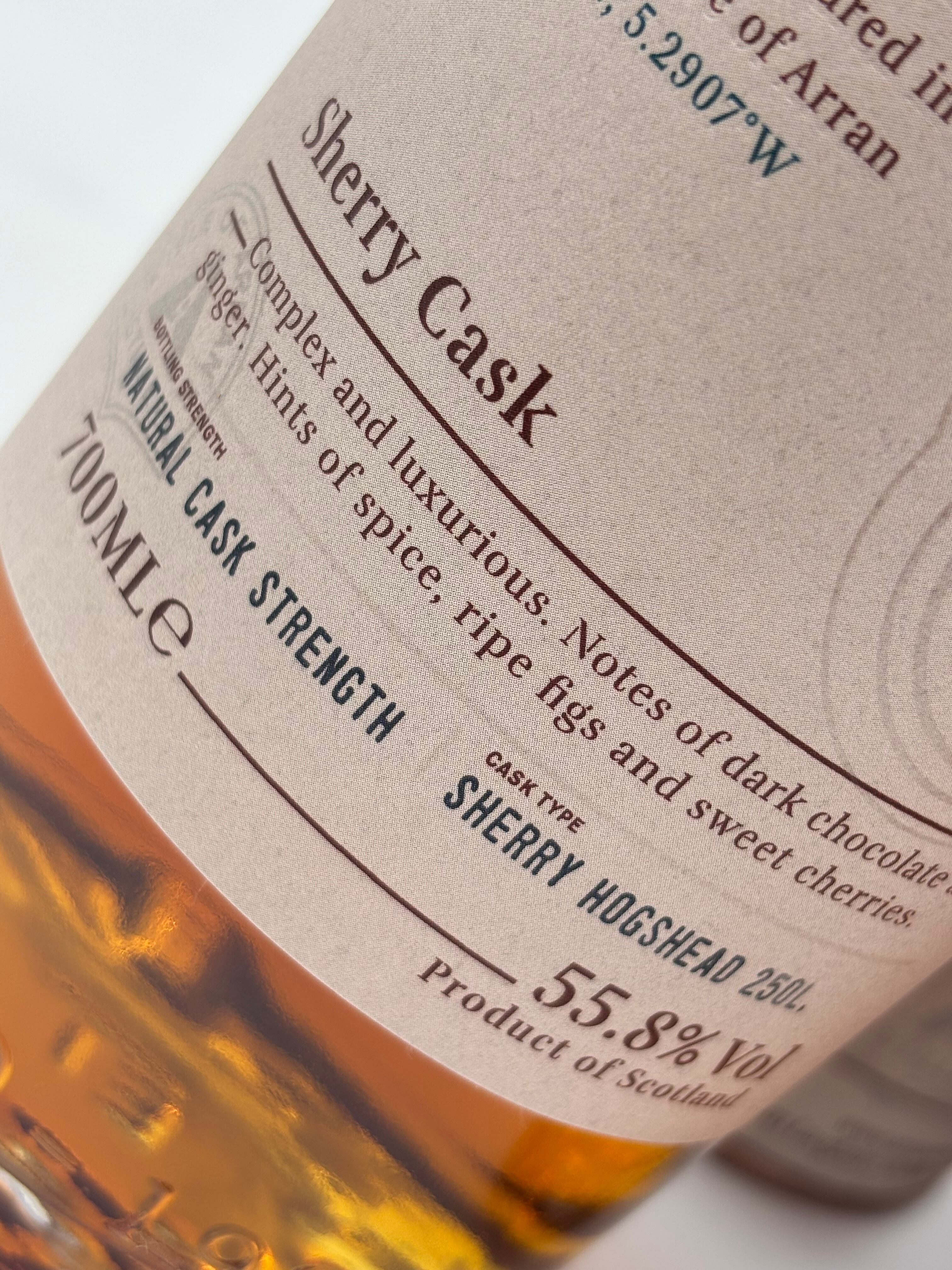 ファーストフィルのシェリーホグスヘッドですべての期間熟成し、シェリー樽由来のリッチなフレーバーが引き出されている。カスクストレングスでボトリングしたフルボディの仕上げ。