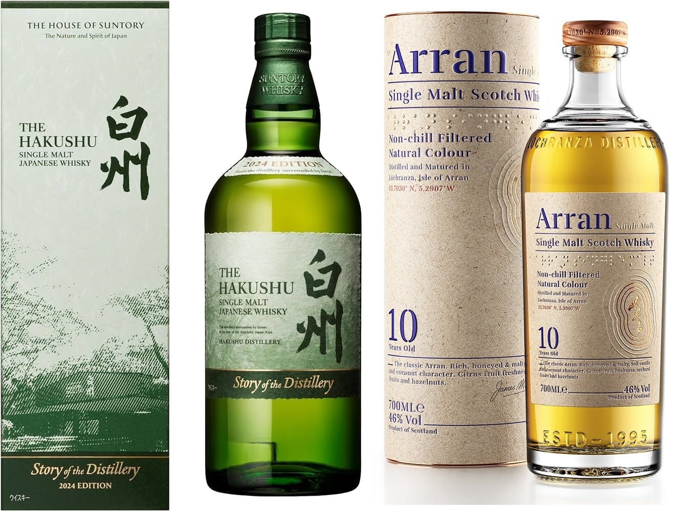 「白州 Story of the Distillery 2024 EDITION(700ml)」と「アランモルト10年(700ml)」の2本セット。