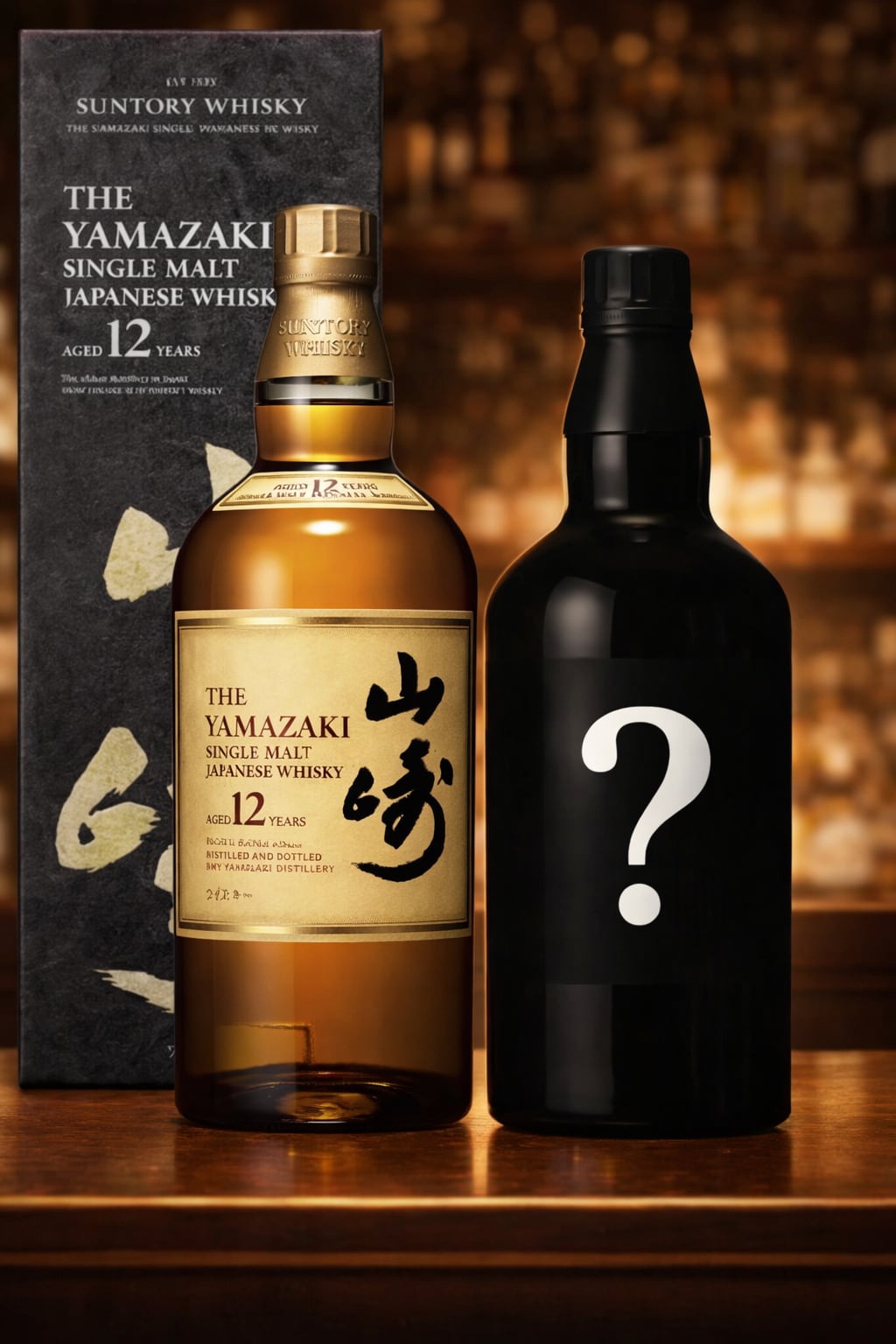 山崎12年に当店で12,000円相当で販売しているウイスキーを、シークレットボトルとして組み合わせました。